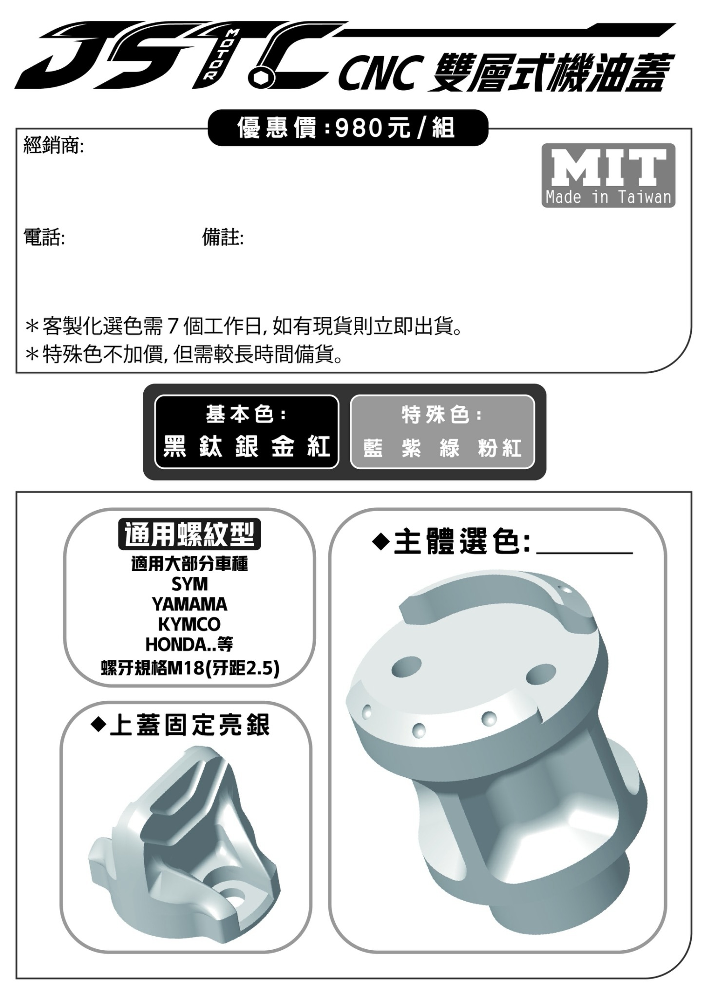 以高精度 CNC 加工製作,線條俐落、質感細膩,專為 SYM 車系打造通用規格。 不只是更換零件,而是為愛車增添專屬風格的關鍵細節。 讓每一次打開機油孔,都展現你的改裝品味。✨✨